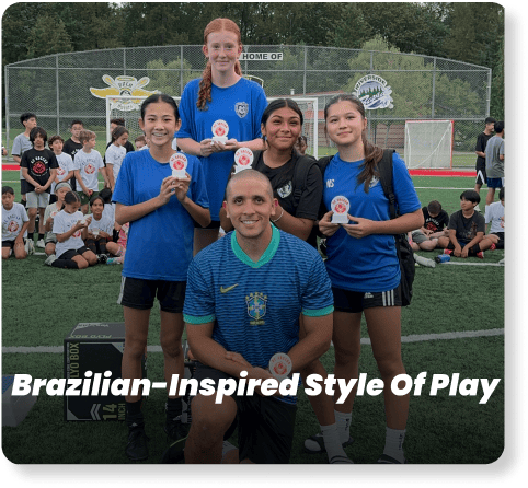 Our methodology is based on the idea that soccer mastery starts with the individual. By focusing on each player’s unique needs and strengths, we help them become confident, creative, and technically sound. Our training incorporates elements of street soccer and futsal—two key pillars of the Brazilian game—where players develop exceptional touch, vision, and decision-making in fast-paced, small-space environments. This approach builds the foundation for quick thinking, sharp skills, and fluid play, even under pressure.